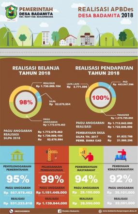 Seperti tahun-tahun sebelumnya sesuai amanat undang-undang dan sebagai wujud transparansi anggaran, maka realisasi Anggaran Pendapatan dan Belanja Desa Badamita Tahun 2019 dipublikasikan kepaada masyarakat umum melalui media sosial pemerintah desa baik melalui website resmi desa, face book maupun twitter dan melalui media baliho.