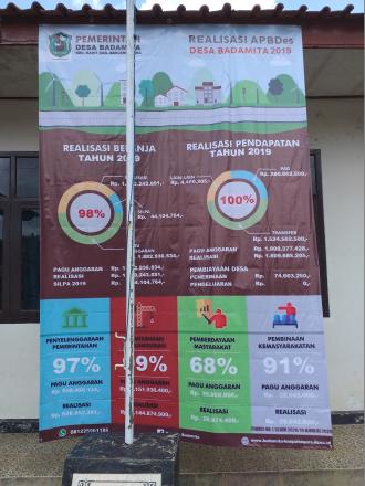 Menindaklanjuti Pasal 72 Peraturan Menteri Dalam Negeri Nomor 20 Tahun 2018 tentang Pengelolaan Keuangan Desa, maka Pemerintah Desa Badamita memasang banner Realisasi Anggaran Pendapatan dan Belanja Desa (APBDes) Tahun Anggaran 2019 di tempat-tempat strategis yang mudah diakses masyarakat umum.