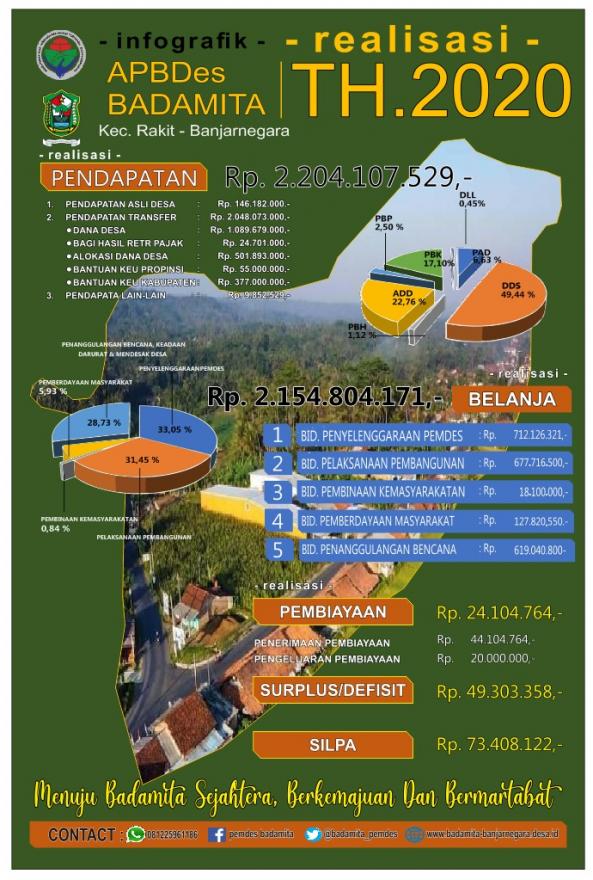 Saat ini sudah memasuki Tahun Anggaran 2021, sesuai amanat UU No. 14 Tahun 2008 tentang Keterbukaaan Informasi Publik dan Peraturan Komisi Informasi Pusat No. 1 Tahun 2018 pasal 2 ayat 1(g), Pemerintah Desa WAJIB mengumumkan secara berkala Informasi Publik yang salah satunya adalah Laporan Realisasi APBDes TA 2020 dalam bentuk dokumen dan banner tranparansi anggaran.