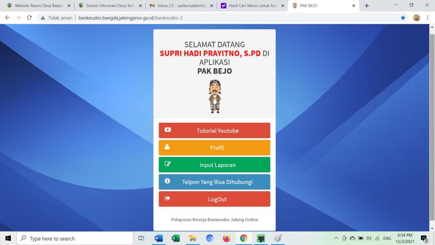 Biro Administrasi Pembangunan Daerah Setda Provinsi Jawa Tengah mengadakan Bimbingan Teknis Aplikasi Pak Bejo Versi 2021 melalui media zoom meeting pada hari selasa 09 maret 2021. Bimtek diikuti oleh perwakilan dari kabupaten, kecamatan dan desa dari Kabupaten Cilacap, Kebumen, Purworejo, Banjarnegara, Purbalingga dan Banyumas.