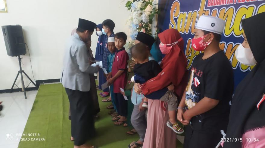 Dengan Tajuk Kegiatan Badamita Peduli Yatim Piatu yang dilaksanakan pada hari ahad 05 September 2021 bertepatan dengan 27 Muharram 1443 H, Panitia Santunan Yatim Piatu Desa Badamita berhasil menyalurkan donasi kepada 52 anak yatim piatu.
