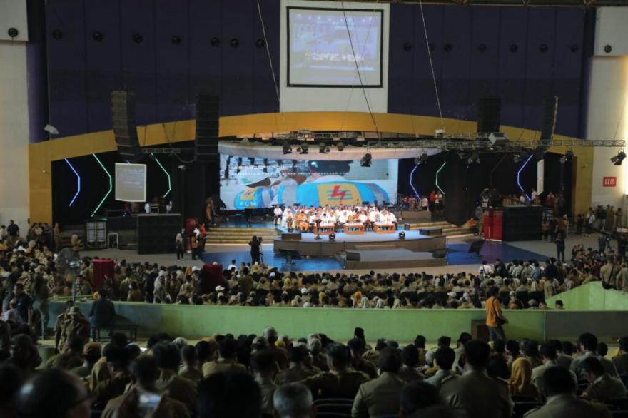 Mereka semua berkumpul dan antusias mengikuti acara Dialog Percepatan Musyawarah Desa Khusus Pembentukan Koperasi Desa/Kelurahan Merah Putih yang digelar di Holy Stadium Kota Semarang, Selasa (6/5/2025).