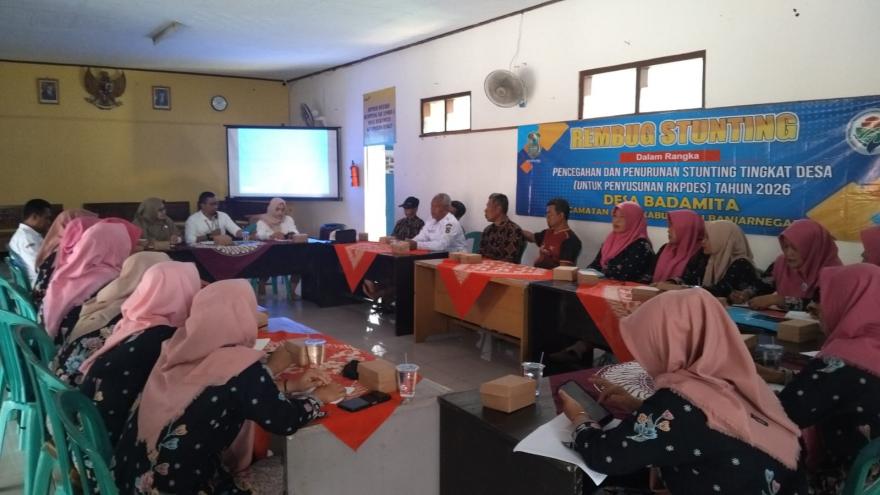 Pemerintah Desa Badamita melaksanakan rembug stunting desa pada Rabu, 13 Agustu 2025 di Aula Desa Badamita yang dihadiri oleh seluruh stake holder yang ada antara lain Perangkat Desa, Kader Posyandu, TP PKK, Bidan Desa dan Pendamping Desa.