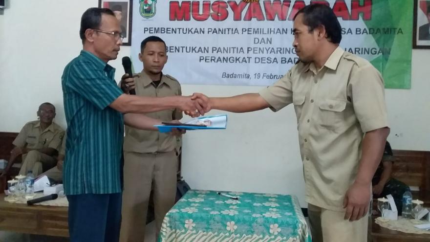 Setelah Badan Permusyawaratan Desa melaksanakan rapat Pra Pembentukan Panitia Pemilihan Kepaala Desa bersama Pemerintah Desa, sebagai tindak lanjut maka dilaksanakan Pembentukan Panitia Pemilihan Kepala Desa pada hari Selasa 19 Februari 2019 bertempat di Aula Desa Badamita.