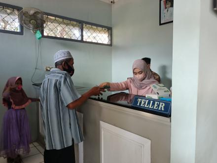 Keluarga Penerima Manfaat BLT DD dengan tertib dan menerapkan protokol kesehatan Covid-19 hadir di BKK Mandiraja Cabang Rakit sekak pukul 09.00 WIB. Seluruh Kepala Dusun didampingi Babinsa dan Bhabinkamtibmas hadir melakukan pendampingan dan memastikan bahwa KPM sudah melaksanakan vaksinasi Covid-19 sebagai salah satu syarat penerimaan BLT DD.