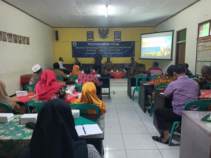 Musyawarah yang dihadiri oleh unsur masyarakat, forkompinca dan BKAD UPK Rakit ini dipimpin oleh Ketua BPD Desa Badamita Riswan dengan hasil akhir menyepakati transformasi UPK ex PNPM Mandiri Perdesaan menjadi BUMDesma dan menunjuk delegasi desa yang akan mengikuti Musyawarah Antar Desa.